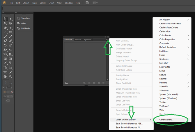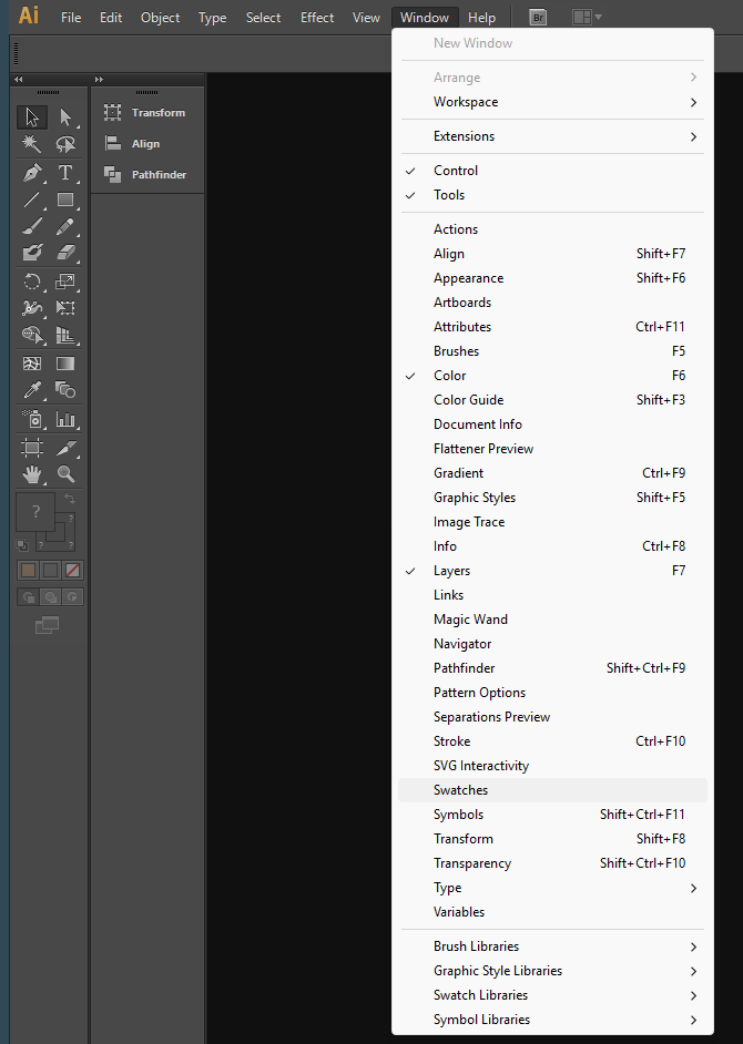 Open Illustrator and navigate to Window > Swatches
