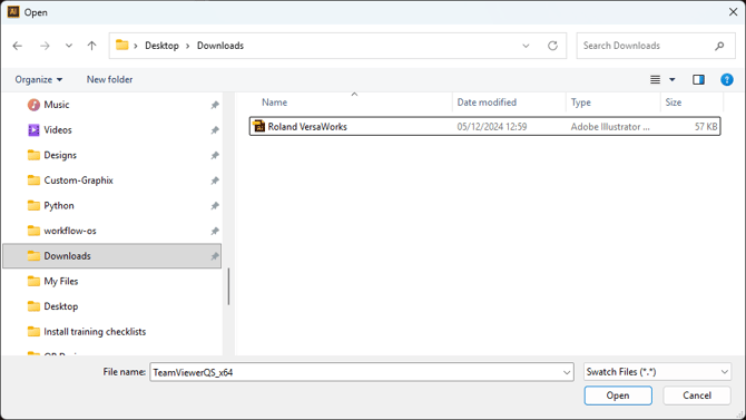 Navigate to your Downloads folder and select the Roland VersaWorks File.