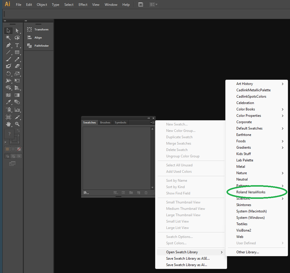 You should now have the Roland VersaWorks Special colour swatches available in your Illustrator package. You will have to do this process each time you would like to use the special colour pallet.