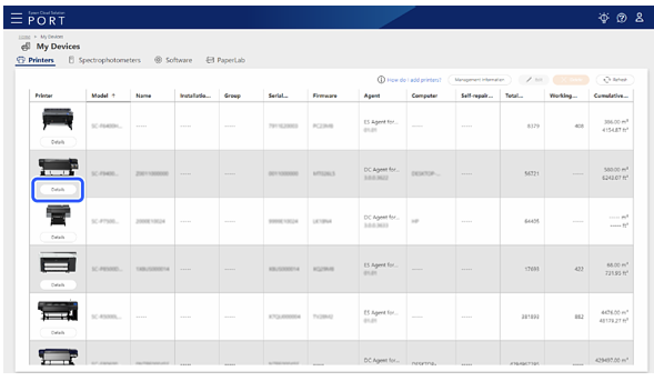 - Click Details on the row of the printer for which you want to request shipping replacement parts